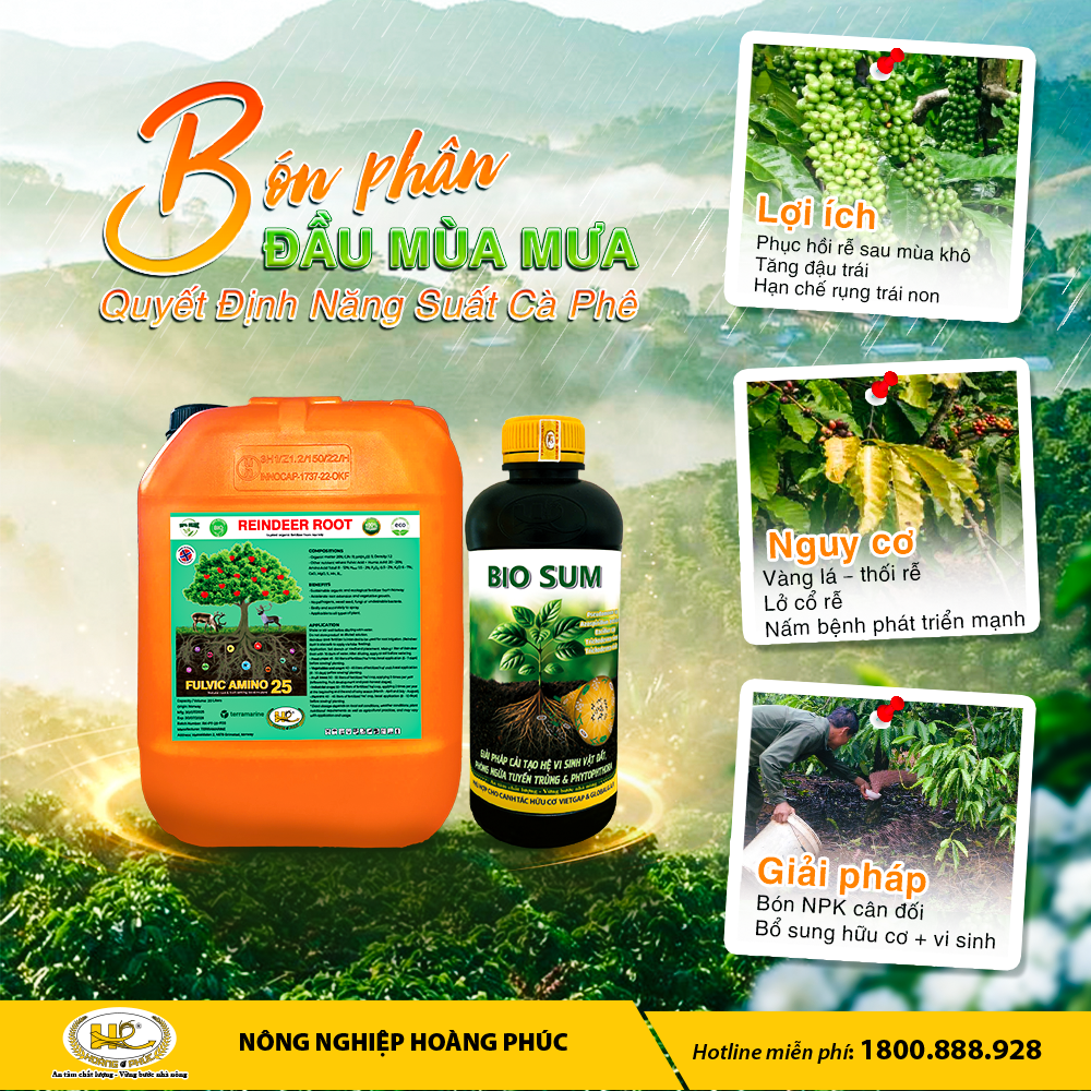 Hi vọng nội dung bài viết trên của Nông nghiệp Hoàng Phúc đã giúp bà con nhận thấy rằng việc kết hợp dinh dưỡng hợp lý cùng các giải pháp sinh học và cải tạo đất sẽ giúp vườn cà phê khỏe mạnh, tăng sức đề kháng tự nhiên và hạn chế rủi ro sâu bệnh. Từ đó góp phần ổn định năng suất, nâng cao chất lượng hạt và mang lại hiệu quả kinh tế bền vững cho người trồng.