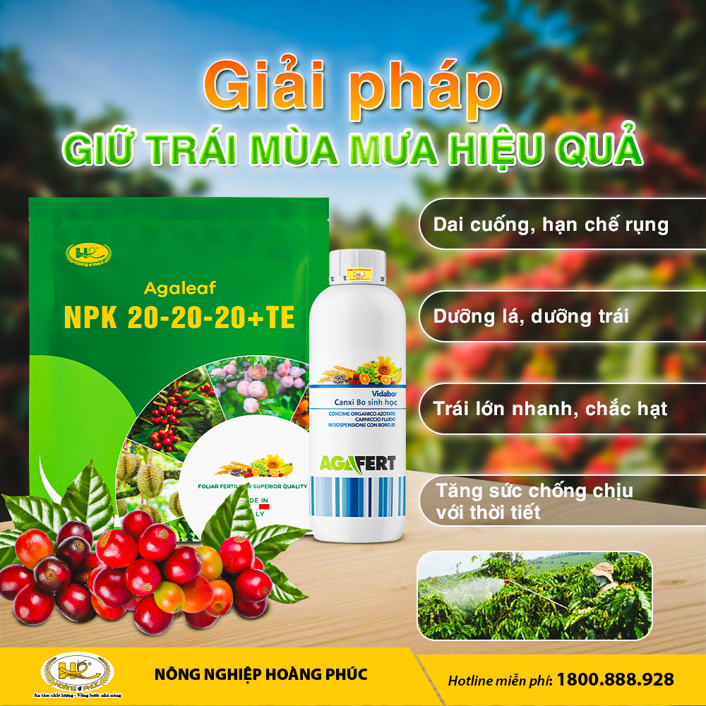 Mùa mưa là giai đoạn nhạy cảm đối với cây cà phê, đặc biệt là nguy cơ rụng trái non cà phê. Tuy nhiên, nếu áp dụng đúng kỹ thuật và lựa chọn giải pháp dinh dưỡng phù hợp như phân bón hữu cơ Vidabor và NPK của Nông nghiệp Hoàng Phúc, nhà vườn hoàn toàn có thể kiểm soát tốt tình trạng này, đảm bảo năng suất và chất lượng vụ mùa.